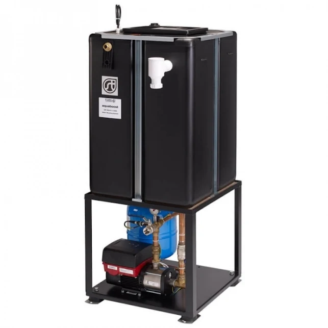 The Aquaboost Framed Booster System offers fixed speed pump technology with a nominal 50 litre water tank, which is capable of providing flow rates of up to 80 litres per minute, or heads of up to 35 metres depending on the model of the unit.