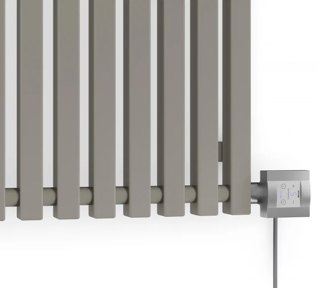 The stylish, classic shape is complimented with a distinctive Metallic Stone, matt, rough texture, presenting a completely unique horizontal designer radiator that effortlessly integrates into contemporary interiors of modern design. The electric version of a beautifully designed decorative radiator, available in an under-the-window and high-decorative options. Accessories are available for the Tall Triga E model, including hangers and shelves, providing practical and functional solutions for bathrooms, kitchens and bedrooms.